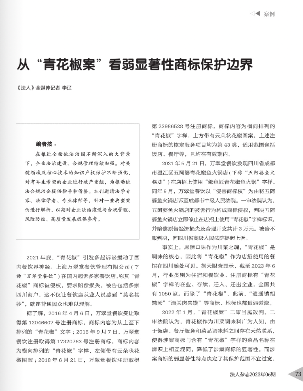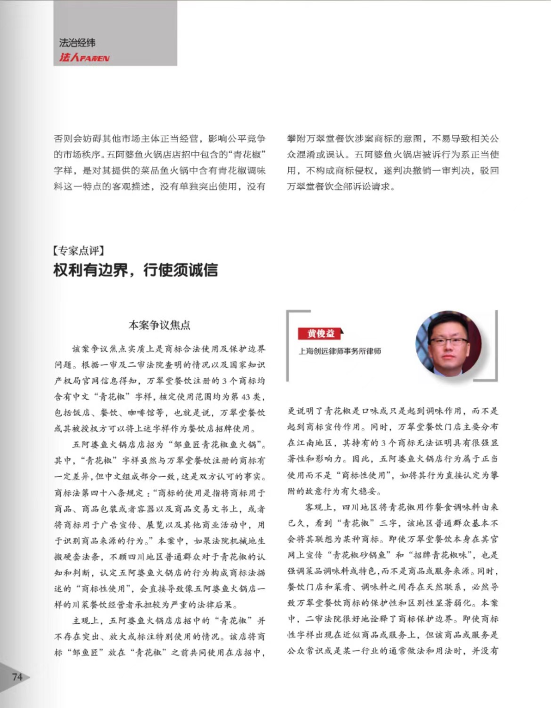 保山辉知简讯 | 辉知队黄俊益律师应“法治日报”旗下杂志邀请,就“青花椒”案发表专家点评